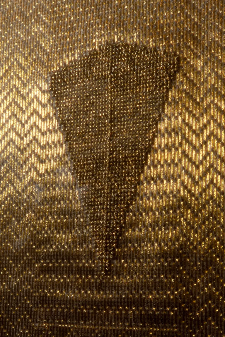 Mi obra explora la tradición del bordado en oro como una ventana hacia la historia oculta de las mujeres latinoamericanas, utilizando patrones derivados de los ornamentos religiosos que acompañaban a los íconos sagrados.