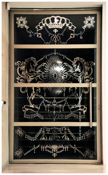 Santo animal consta de un estudio de heráldicas ,arte de explicar y describir los escudos de armas de cada linaje, en este caso animales mitológicos. Se trabajo sobre las puertas de la misma sala. simulando portales.