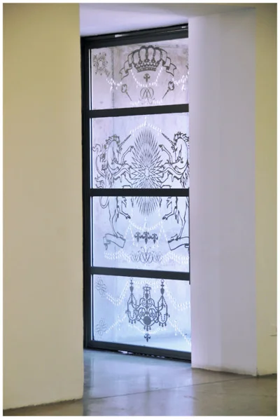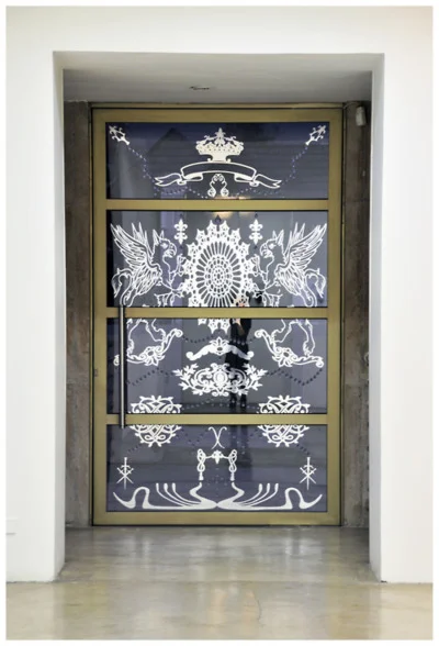 Santo Animal is a study of heraldry, the art of explaining and describing the armorial bearings of different lineages, in this case, mythological animals. The doors of the gallery itself were intervened in order to simulate portals.